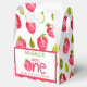 Söta en jordgubbe första födelsedag presentaskar