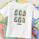 Denna personliga flick-t-shirt har en uppsättning skissade enhörningskrabbel i en fantasifull, lekfull stil med glada uttryck mot pastellfärgade bakgrunder.