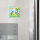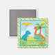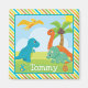 Söta färgglada dinosaurievänner design med tropiskt träd och solsken, med dinosaurieägg och utskrifter clipart på en randig blå, grön, gul och orange bakgrund
