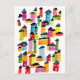 Söta färgglada hus i akvarellkonst vykort
