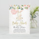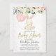 Söt rosa, guld och grönt blommigt Flickas barnduschinbjudan. Den här designen är ett sött sätt att skapa en ny flicka barndusch. Den har en söt bunny, hjärtformade hjärtballong, faux guld glitter, blommigt arrangemangare och faux guld glitter.