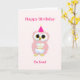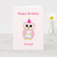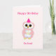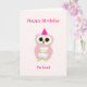 Söt födelsedagsuggla på ljusrosa kort. All text kan anpassas.