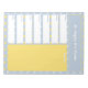 Håll dig organiserad och planera dina måltider med stil med denna söta personliga anteckningsblock för måltidsplanering med namnet "Mr. Snuggles"! Den har en charmig design med gula och vita tassavtryck på en mjuk blå bakgrund, vilket gör den perfekt för djurälskare och hektiska hushåll. Håll koll på dagliga måltider med dedikerade avsnitt för varje veckodag, plus ett praktiskt område för inköpslista. Anpassa måltidsplaneringen med ditt husdjurs namn för en rolig och personlig touch. En fin present till djurägare eller alla som älskar ett lekfullt och funktionellt tillskott till sin hemm- eller köksorganisation.