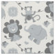 Skapa något sött med detta bedårande djungeldjursstoff som har ett lekfullt mönster av illustrerade lejon, elefanter, apor och fåglar i en mjuk grå palett på en ren vit bakgrund. En personlig monograminitial i en elegant grå ram lägger till en anpassad touch. Det könsneutrala färgschemat gör detta perfekt för dekoration i barnkammaren, babysängar, filtar och handgjorda presenter till alla småttingar. Initialen är helt anpassningsbar.
