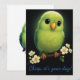Säg tack med charm och värme med hjälp av detta bedårande vikta kort med en handmålad grön fågel som sitter på en blommande gren. Med en mjuk, fantasifull stil och tom insida för ditt personliga meddelande är det det perfekta sättet att uttrycka tacksamhet - oavsett om det gäller presenter, vänlighet, gästfrihet eller stöd. Perfekt för barn, lärare, fågelälskare och alla som uppskattar söt och naturinspirerad brevpapper. Originalkonst av AssilDigitalArt.