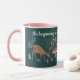 Söt mugg med en söt nostalgisk skog grön och rosa traditionell klassisk julillustration med skogsdjur i naturen. Texten lyder: 'Det börjar se riktigt mycket ut som jul' Originalillustration av Caroline Bonne Müller