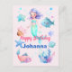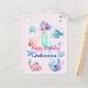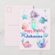 Söta akvarell havsdjur och siren-temat glad födelsedag vykort. Anpassningsbart meddelande och namn.