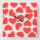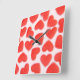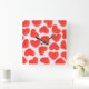 Teknisk design med gummigodis i hjärtan med "kärlek" skriven på dem i röda nyanser och rosa på blekens rosa. Väggklocka med anpassade som du kan anpassa med din egen text, bilder och dina idéer. Skapat med hjälp av ett originalfoto och digital teknik av Jess Perry.