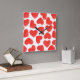 Teknisk design med gummigodis i hjärtan med "kärlek" skriven på dem i röda nyanser och rosa på vit bakgrund. Väggklocka med anpassade som du kan anpassa med din egen text, bilder och dina idéer. Skapat med hjälp av ett originalfoto och digital teknik av Jess Perry.