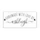Skapa din egen gummistämpel med hjälp av dessa mallar från invintage. Denna moderna design har "handgjord med kärlek" i en söt böjd text i handskriven stil med ditt namn i ett modernt script-teckensnitt. Innehåller två söta hjärtan på vardera sidan om "handgjord med kärlek av". Perfekt för kreativa!