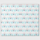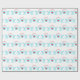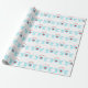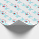 Söta högtidsänglar på vit bakgrund presentinslagning papper. Ljus turkos trumpetänglar som tillkännager God Jul med ett hjärta i mitten.