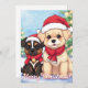 Bedårande högtidskonst med valpar som bär tomteluvor, perfekt för festlig dekoration.