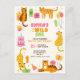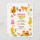 Denna design har illustrerade tigrar, leoparder, bland färgglada ballonger, födelsedagspresenter och födelsedagshattar i kombination med modern typografi. All text på denna födelsedagsinvitation kan redigeras. Hitta matchande föremål i min butik.