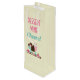 En vin-presentpåse som säger: Dessert Vin Cheers! Illustrerad med chokladglass pub, 3-skopsskåp med körsbär på ovansidan och jordgubbsbär flyter med vispgrädde. Små jordgubbar och körsbär. Blekens gult - bakgrund. Uppfriskande, hett sommarbehandling.