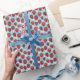 En ljuv repetering mönster av juistjordgubbar och växtens vita blommor sprids över en himlar blå bakgrund. Den här presentfigursättningen är ett tillägg till din presentpaketering för födelsedags- och duschpresenter samt sommartid i firande och party.