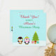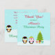 Det här söta julfirande Tack-kortet har en söt pingvinpar i en vinterscen där de står bredvid ett julgran och skulle vara ett bra sätt att tacka dina gäster för att de kom till din fest. En matchande inbjudan finns också. (29)