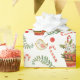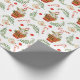 Den här helgdag med pappra inslag är en mönster av söta julsbehandlingar omgivna av söta små fåglar, grönt bladsprit och pepparmynta polkagrisar på vit bakgrund.