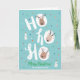 Söta julrenhuvuden med handskrivet Hohoho, julgranar, prickar och stjärnor i starka färger på ljusblå bakgrund