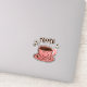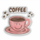 Bedårande klistermärken med en leende kaffekopp och hjärtan.