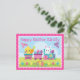 Den här roliga och livfulla påskkortet visar en lekfull kyckling, en kanin och ett färggrant tåg fullt med påskägg. Det personliga "Glad Påsk" -meddelandet ger en speciell touch, vilket gör det perfekt för att skicka säsongsbetonade hälsningar till nära och kära eller fira en vårfödelsedag. Med sin ljusa, glada design och festliga anda är detta vykort ett bra sätt att sprida glädje under påsksäsongen och ge en leende på vem som helst.
