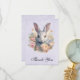 Söta kanin omgiven av pastellfärgade blommor tack kort