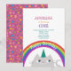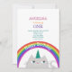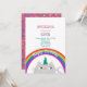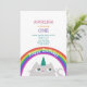 Enkel, modern söt katt enhörning bebis flicka 1-års födelsedagsinbjudan med regnbåge och stjärnor!