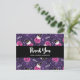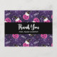 Tack-kort med ett bedårande halloween-mönster. Katter i häxhattar, sittande på rosa pumpor med lila spindelnät i bakgrunden.
