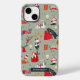 Söt retro julillustration med katter runt julgranen som tittar på presenter, för kattdamer / kattälskare. Originalillustration av Caroline Bonne Müller
