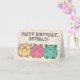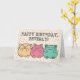 Skapa ett älskvärt personligt kort för födelsedagar eller andra tillfällen. Meddelandet på framsidan och insidan av detta vykort är redo för din personliga touch. Detta kort har söta Kawaii-stiliserade tecknade hamstrar i gult, rosa och grönt mot en festlig prickig bakgrund.
