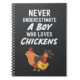 **Titel:** Söta kycklingpresenter för bebispojkar Barn Djurfantast anteckningsbok - Underskatta aldrig en pojke.