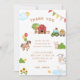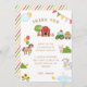 Tacka era underbara födelsedagsgäster med detta söta lantbrukstema tackkort med en lada, färgglada ballonger, vimplar och söta illustrationer av en häst, ko, gris, anka och tupp. Perfekt för en ung pojke eller flicka som älskar djur, kan detta kort anpassas med din egen text. Matchande artiklar finns tillgängliga.