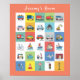 Färgglad affisch med alla lastbilar och transporter som små pojkar älskar att leka med och drömmer om att få köra själva. Modern typsnitts typografi "Jakobs rum" kan anpassas via redigeringsmenyn. Vacker väggkonst för barnens sovrum eller lekrum - eller som en present till baby shower eller födelsedag.