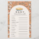 Den här söta flickans baby shower-babyspel-kort har en paj i en båge på en orange bakgrund med blommönster. Baksidan har en ljus orange bakgrund med blommönster. Anpassa den efter dina behov. Du kan hitta matchande produkter i min butik.