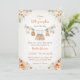 Förbered dig för att fira den kommande ankomsten av din lilla pumpa med vår söta lilla pumpa höst-födelsedagsfest-inbjudan. Denna förtjusande inbjudan visar vackra orange, krämfärgade och beige akvarell-babykläder som hänger på en tvättlina, tillsammans med charmerande blommor och pumpor. Den fångar höstens väsen samtidigt som den uttrycker glädjen över att välkomna en ny baby. Denna inbjudan är det perfekta sättet att sätta tonen för din hösttema-födelsedagsfest och finns tillgänglig i flera färger för att passa dina önskemål. Anpassning är enkel!
