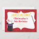 Börja din magiska fest på rätt sätt med vår magiska magiska show födelsedagsfestinbjudan med en röd damaskram med guldstjärnor och en svart hatt med en kanin. Fullt anpassningsbar av dig med din information. ©Corazón Dulce