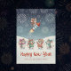Fira årstidens glädje med detta söta akvarell-nyårskort med glada möss i färgglada stickade mössor och halsdukar som tittar på fyrverkerier i ett vinterlandskap. Framsidan visar en lekfull mus som flyger upp i natthimlen på en raket medan de andra jublar under, och fångar det roliga och spännande i nyårsfirandet. Anpassa texten med ditt eget "Gott nytt år"-meddelande, "Med kärlek" och familjenamn för en hjärtlig touch. Baksidan visar samma festliga scen med musen på raketen och gnistrande fyrverkerier för en charmig finish. Den bohemiska akvarellstilen tillför mysig vintervärme och fantasifull skogsstämning, perfekt för familjer, barn och alla som älskar söta