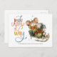 Söta möss som åker släde och ringer in vägen glitt vykort
