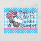 Med ett bra vykort blir perfekten en gåva till din favoritbakare, kock eller vem som helst som har kärlek muffinsar. Blå och vit prick- och gingham-bakgrund med en snabbt frostiserad rosa cupaka och en roligt vit cupkaka med ett körsbär på ovansidan. Muffinsar GÖR LIVET LITE SVARE! Gör en present med våra koordinerade recept- eller köksmagneter. PinkInkArt-original!