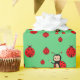 Söta nyckelpigor på grönt presentpapper. Nyckelpigor symboliserar allmän tur!