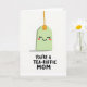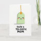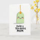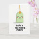 Kortet är designat med en ljus vit bakgrund och centrerar kring en mjuk mintgrön, rundad rektangelkaraktär som liknar en överdragen örtsäck, vilket ger en söt och vänlig hälsning till given närhet och omtanke ❤️. Dess ansikte är enkelt men uttrycksfullt, med varsamt rundade leende ögon, små ögonfransar, en bred uppåtvänd mun och ljusa rosafärgade kinder som antyder ett blygt och tillgiven sinnelag. En tunn gyllene-orange sträng reser sig från toppen och ansluter till en liten matchande flik, vilket ger en prydlig accent ovanför karaktären. En svag grå skugga sitter undertill, vilket ger figuren stadga och håller scenen luftig och osammanträngd. Nära nederkanten placeras ett kort, klumpigt handritat meddelande i mörk bokstavsstil, som läses som en ordlek som knyter samman bilden med en kärleksfull Morsdags-hälsning. Avståndet lämnar gott om öppen vit yta, så att karaktären och orden känns som om de tyst delar en privat