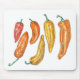 Denna musmatta har ett illustrerat mönster av färgrika röda, orange och gula paprikor. Bild copyright: Dominic White. Med ensamrätt.