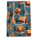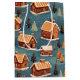 Det här söta mönstret med pepparkakshus och träd är perfekt för presentpåsar. Det finns matchande presentetiketter tillgängliga. Grafisk design köpt med kommersiell användning. Illustration: CosmicMeta
