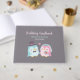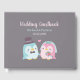 En söt bröllopsgästbok för gästerna att skriva ner sin kärlek och önskningar till paret! Designen har en blå pingvinbrudgumme med topp hatt och fluga och rosa pingvinbrud med krona slöja och en bukett blommor. Pingviner är livskamrater!