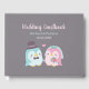 En söt bröllops-gästbok för gästerna att skriva ner sin kärlek och önskningar till paret! Designen har en blå pingvinbrudgum med topp hatt och fluga och rosa pingvinbrud med krona slöja och en bukett blommor. Pingviner är livskamrater!