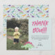 Denna söta och moderna födelsedags tacksamhetskort design för pojkar har en plats för ett foto, med ett dinosauriemönster på baksidan med pastellblå dinosauriefigurer, med en T-Rex, Stegosaurus, regnbågar och jurassiska djungelväxter. Kortet kan anpassas med din egen text. Det är det perfekta dinosaurie-tema tillskottet för din lilla enings födelsedag.