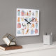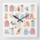 Söta rävar/ugglor/hus/barn/barnkammare vit fyrkantig klocka