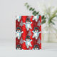 Det här söta röda julkortet har ett förtjusande mönster av dansande snömän mot en lysande, röd gradientbakgrund. De omges också av silverfärgade julgranar med små snöflingor som faller mellan dem.