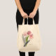 Matkasse med vackra, feminina, söta och flickiga rosa vattenfärgblommor/tulpaner och salvia gröna blad. Anpassa genom att lägga till ditt namn. Perfekt gåva till dina brudtärnor.