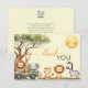 Söta och roliga savann djur könsneutral baby shower Tacksamhetskort. Lejon, Tiger, Apa, Elefant, Zebra, Giraff, och Tiger djur på detta söta savann-tema tack-kort. En rolig och söt babypresent. Personifiera med din information.