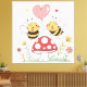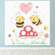 Söta serietecknade bin med hjärtballong på svamp canvastryck